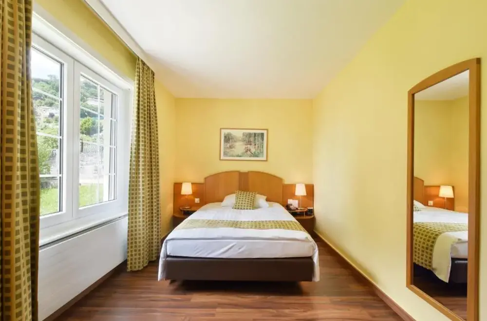 Large, quiet and comfortable room. Magnificent setting. Hotel in the village, convenient access to public transport, and a restaurant right next door. Welcoming and efficient staff. Well-equipped and bright fitness room (it's strangely not signposted at all, you have to ask at reception).
